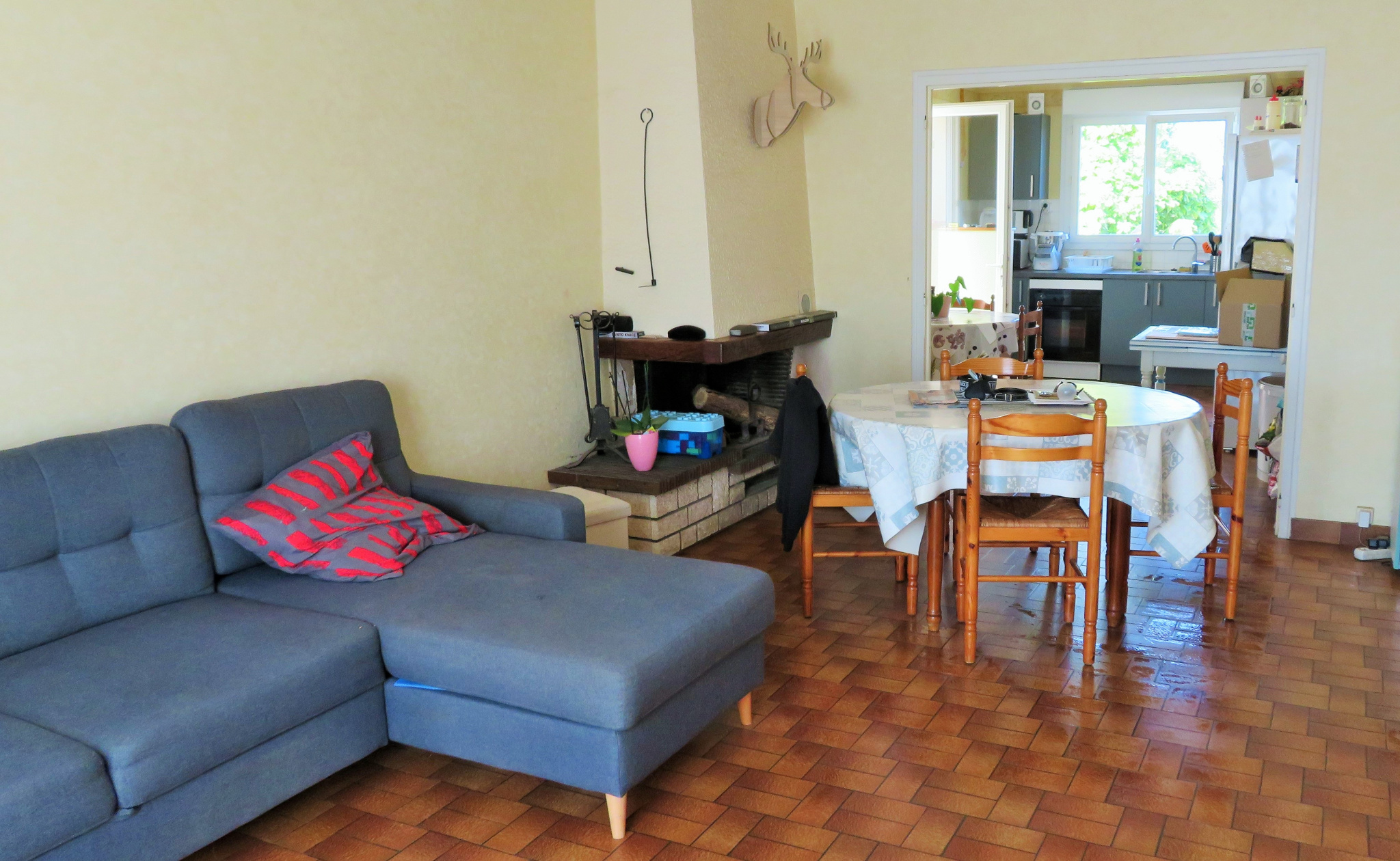 En EXCLUSIVITE , cette maison de plain-pied sur sous-sol, rénovée offre une entrée donnant sur un salon -séjour lumineux de 25 M² avec cuisine A/E ouverte de 14 M², 2 chambres , une salle de douche , WC et dégagement. Double énergie ; électricité-cheminée.
