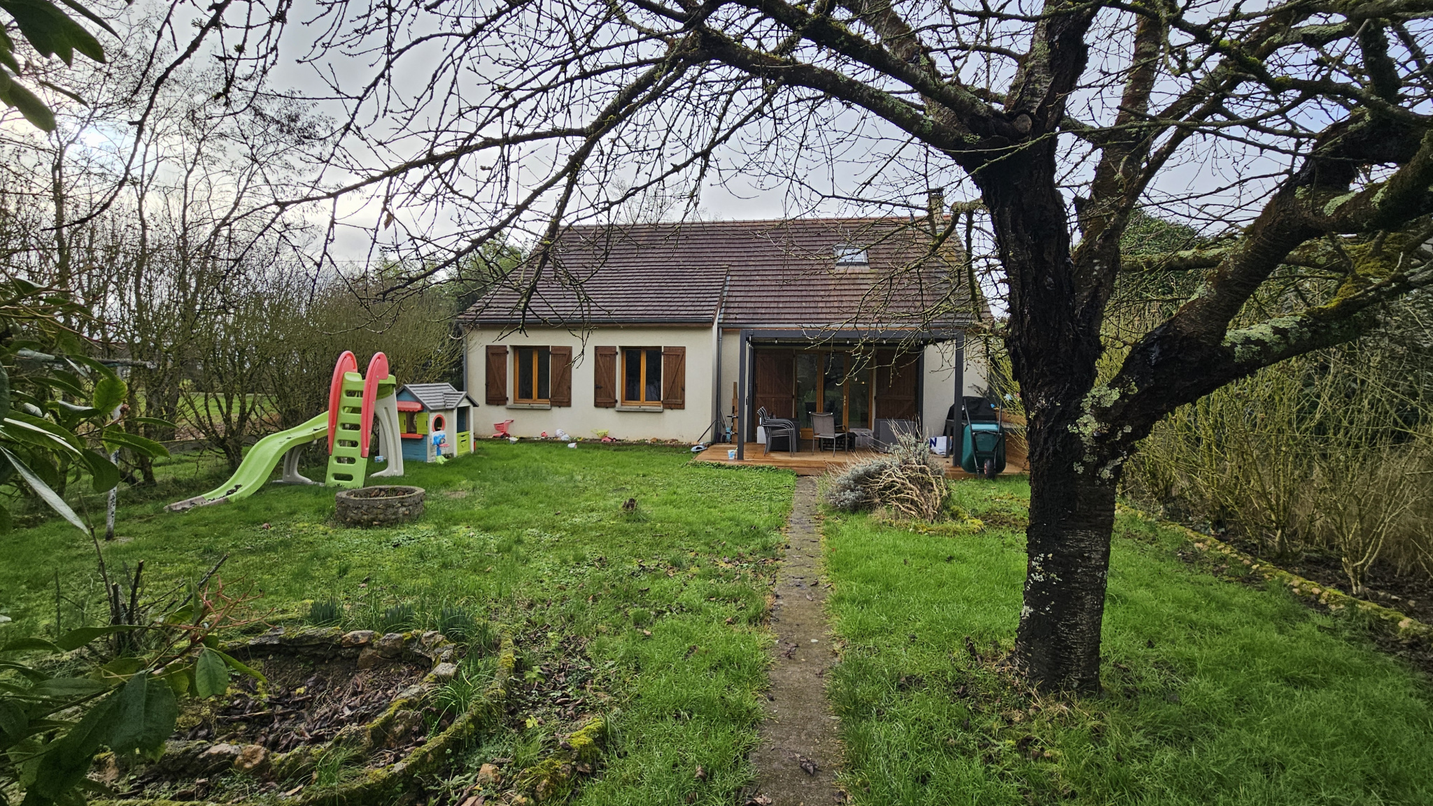 Maison chaleureuse, pratique et fonctionnelle, parfaite pour un premier achat ou pour une famille souhaitant profiter d’un environnement calme et verdoyant sur un terrain de 1500m² (non cloturé).