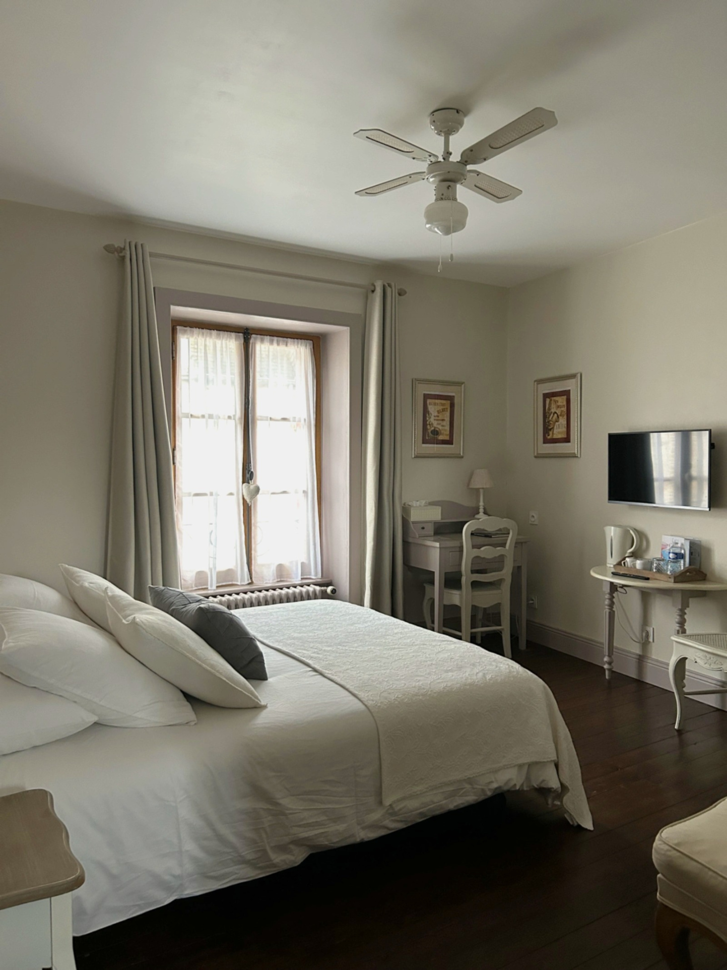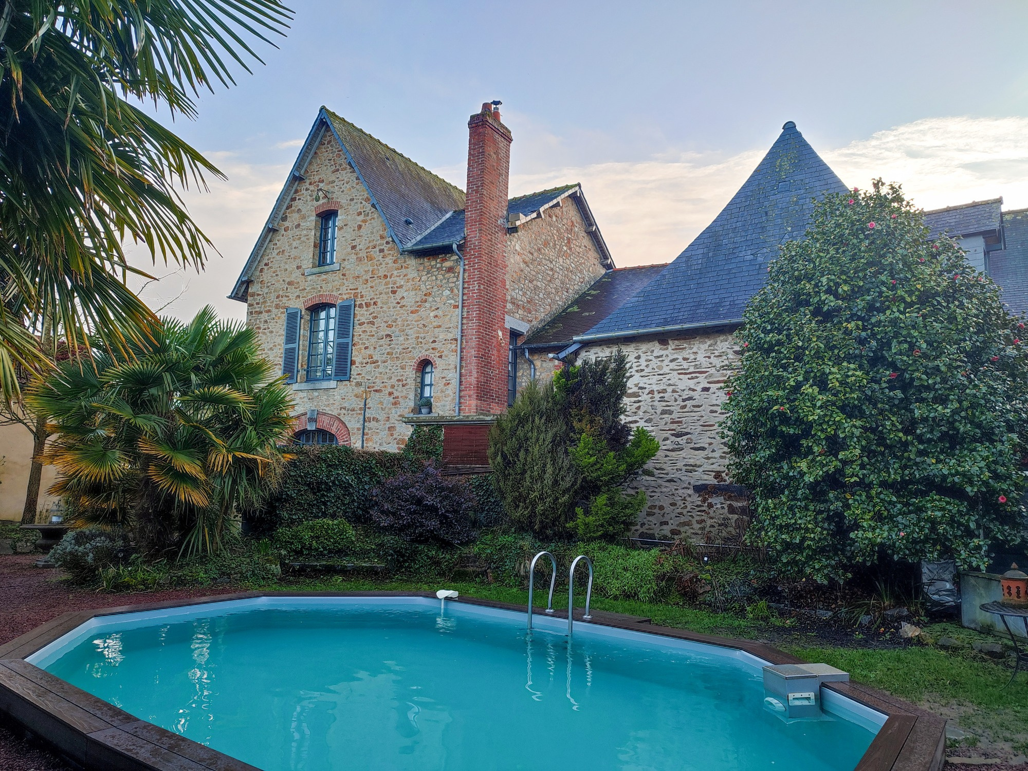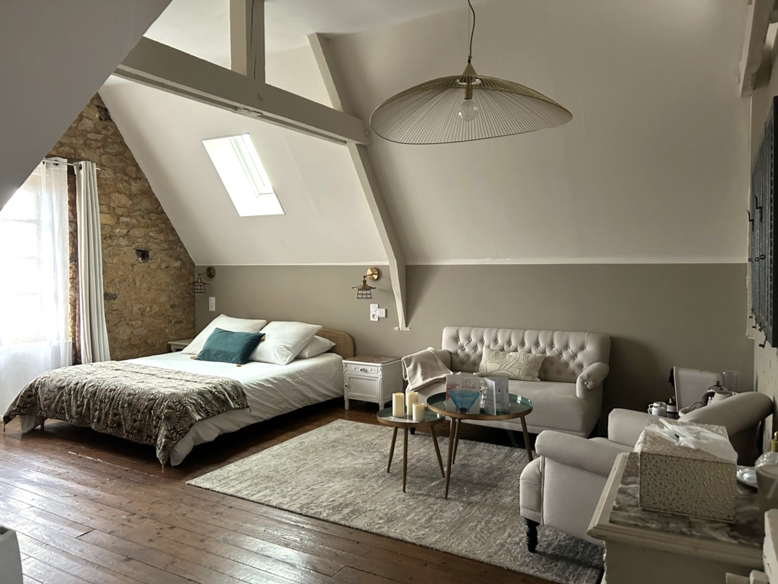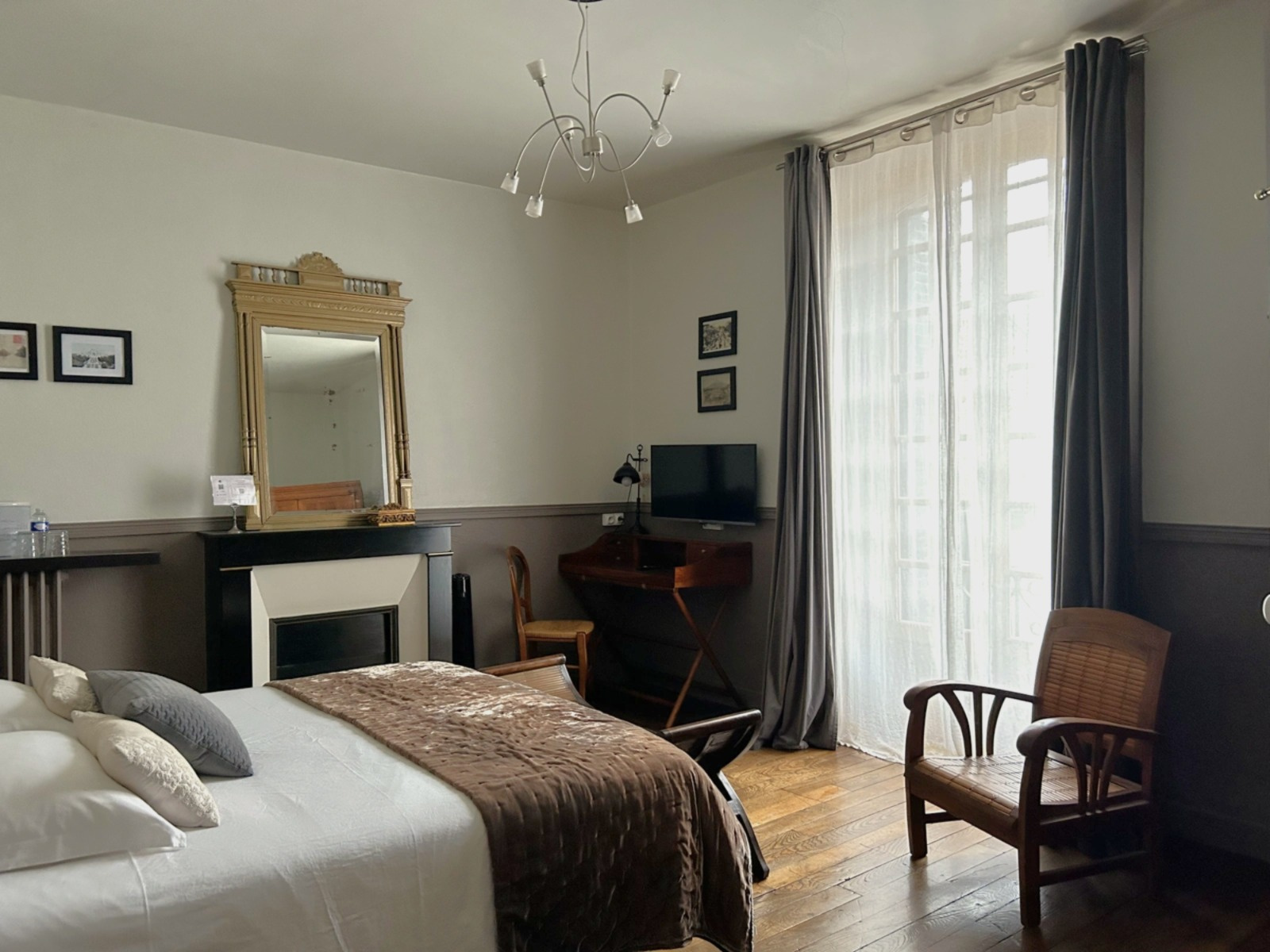 Une élégante maison principale de caractère offrant de beaux volumes et quatre chambres avec sanitaires privatifs, idéale pour une activité de chambres d’hôtes.