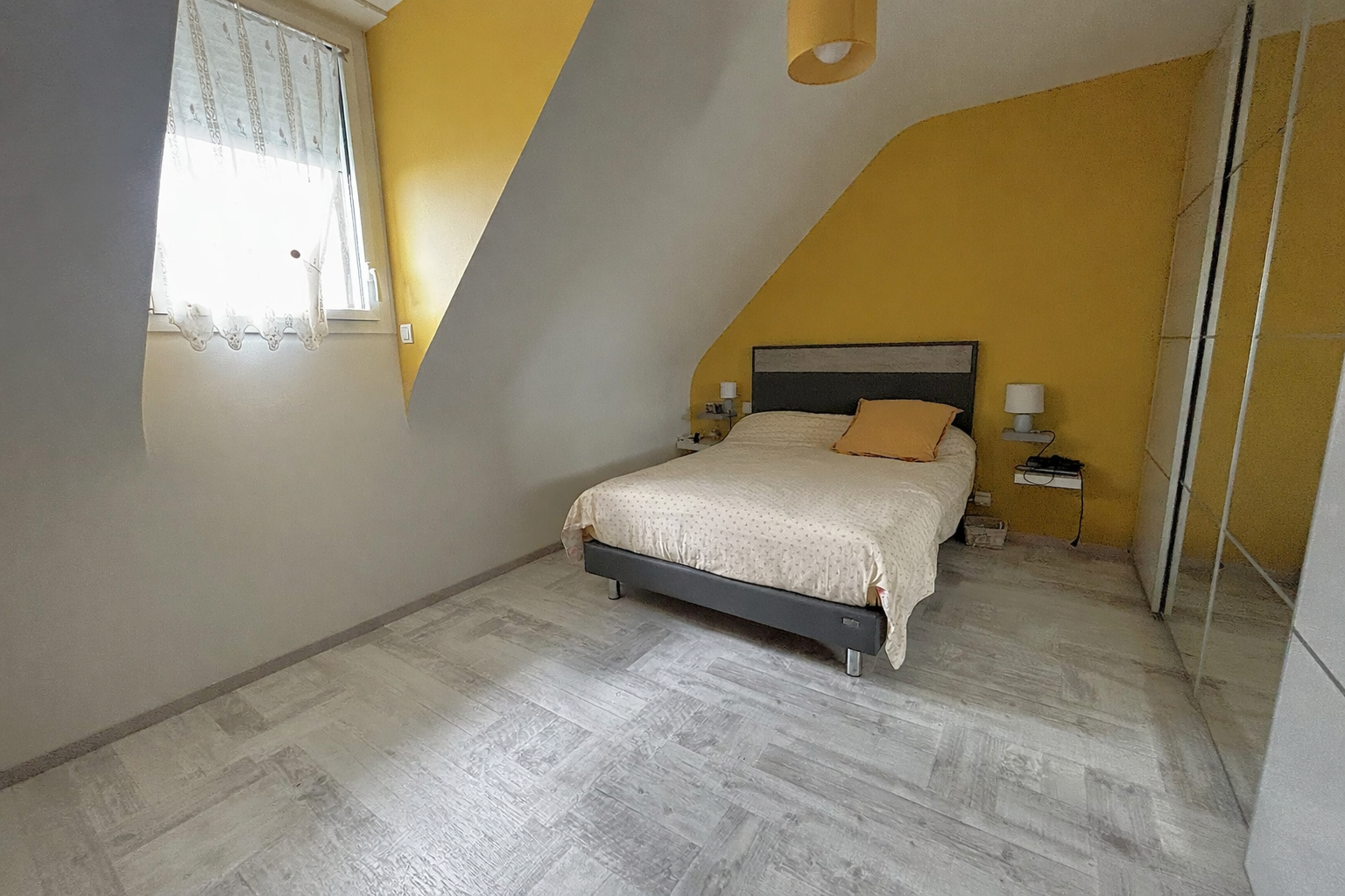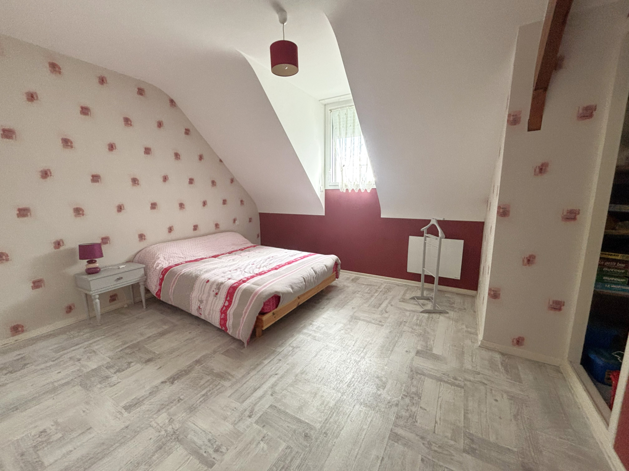 À l’étage, le palier dessert trois chambres, une salle de bains et un grenier, parfait pour le stockage ou un futur aménagement selon vos besoins.