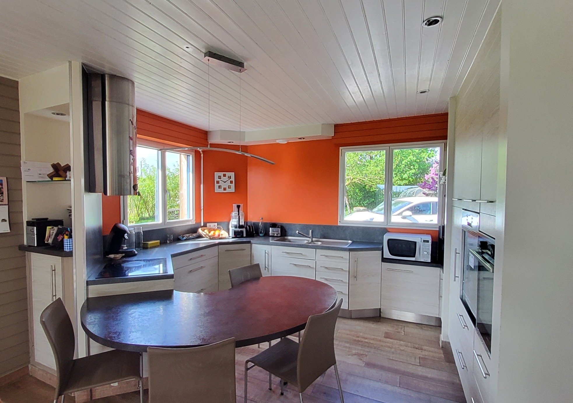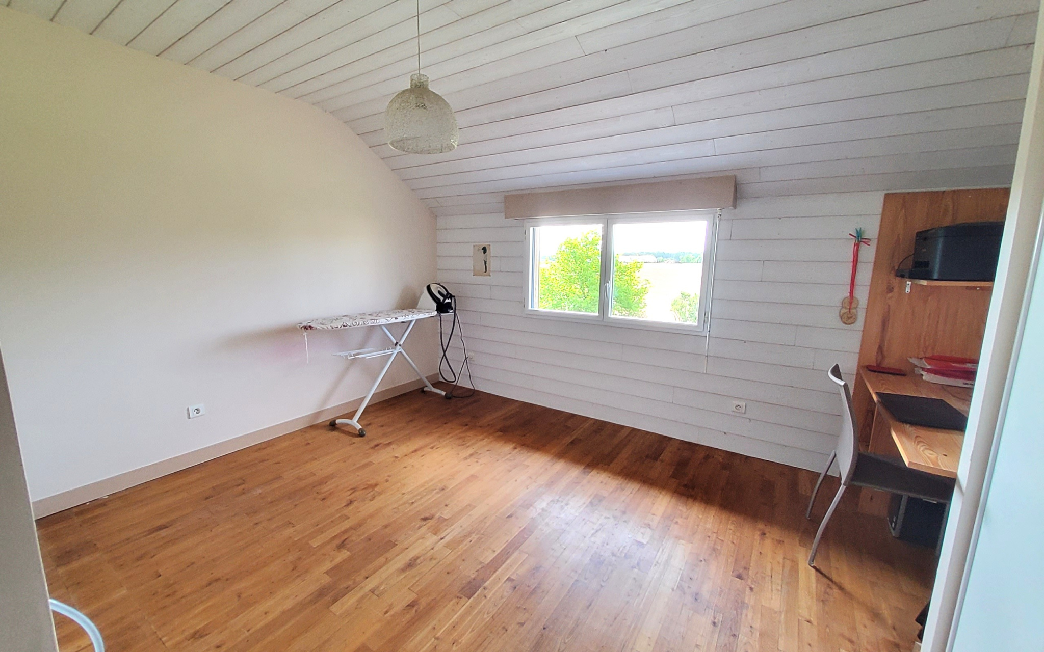 Dès l’entrée, vous découvrirez une superbe pièce de vie de plus de 50 m², baignée de lumière, avec une vue imprenable sur la campagne. La cuisine ouverte, aménagée et équipée, s’intègre parfaitement à cet espace chaleureux et convivial. Un grand bureau complète le rez-de-chaussée et peut facilement être aménagé selon vos envies.